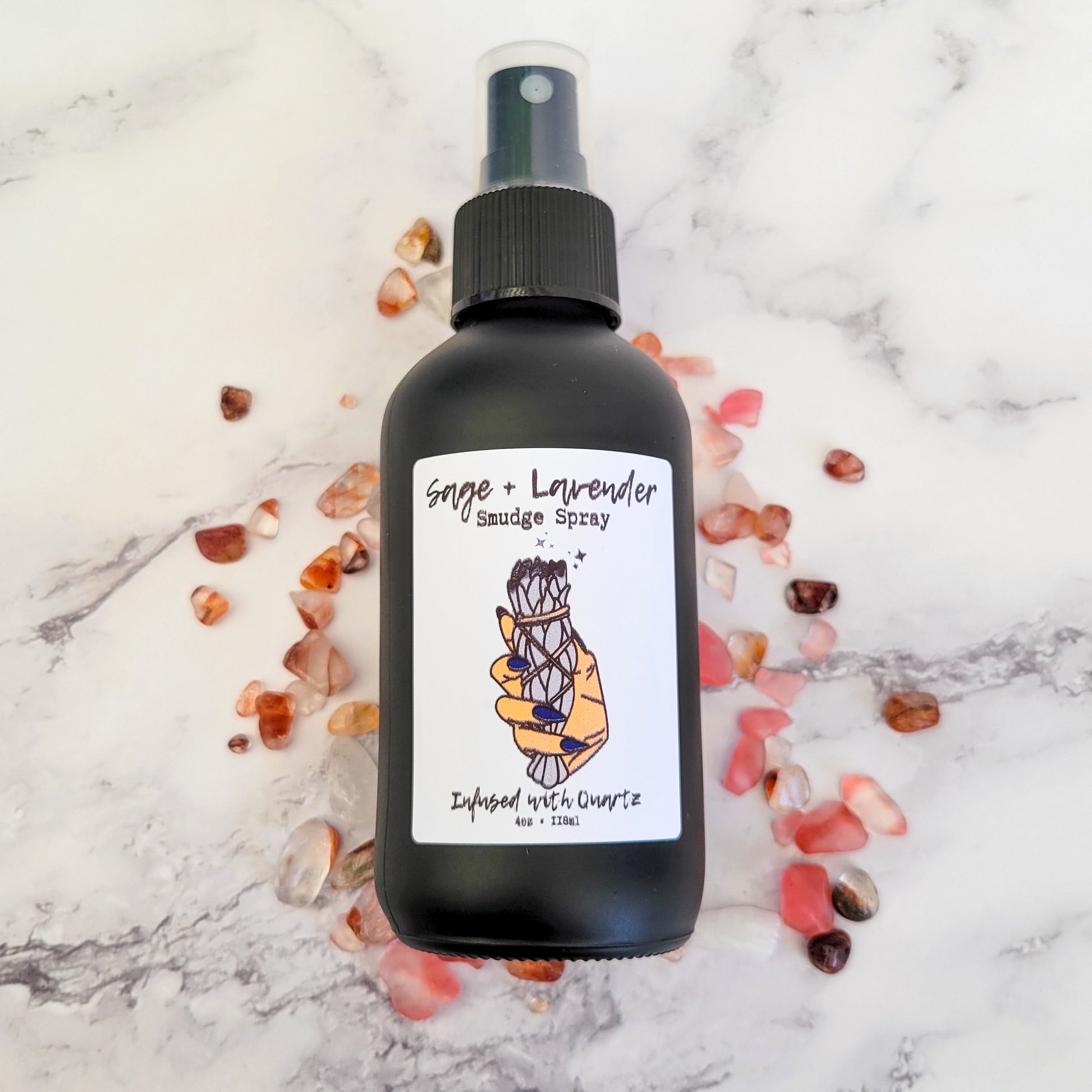 Go sumdge yourelf...and your space. This mist is a smoke free equivalent to burning sage. Clear out negative energy. Charged with quartz for added cleansing.
